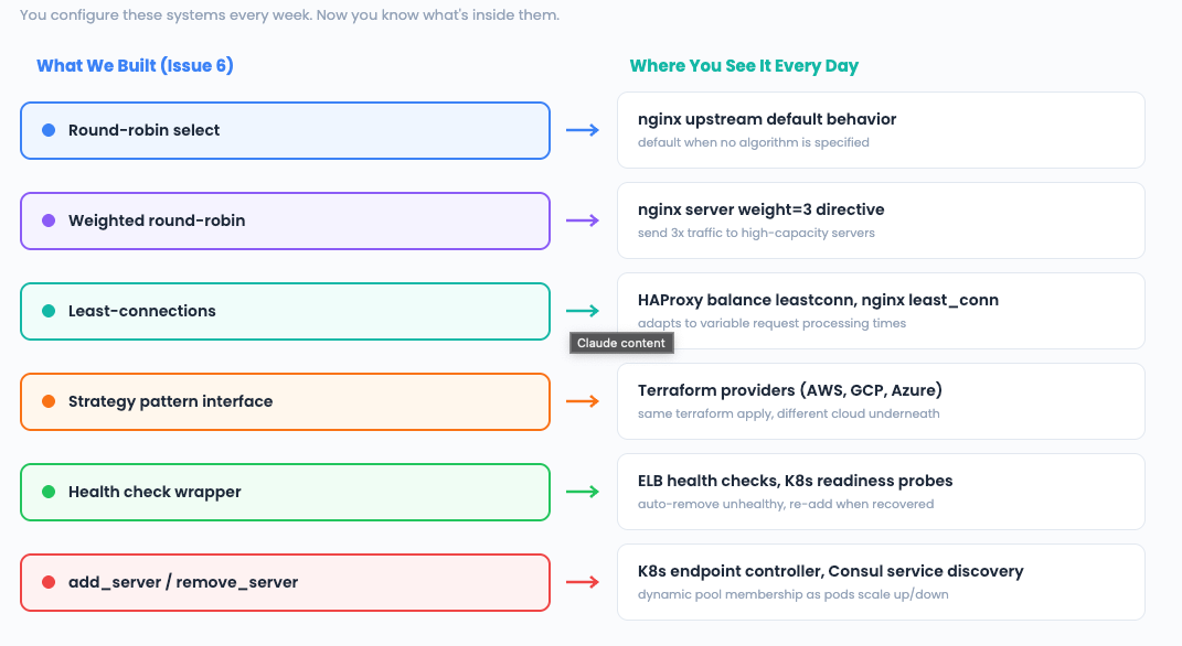But have you ever built what happens inside that upstream block? Today, we build three load balancing algorithms from scratch and learn the design pattern that lets you swap them at runtime without changing a single line of caller code.